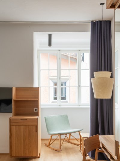 Was wäre ein Fenster ohne Gardinen? Vorhänge schaffen Behaglichkeit, rahmen schöne Ausblicke ein, schützen vor zu vielen Einblicken und schenken Privatsphäre, wenn man sie braucht. Im Haus am Turm schaffen unsere Vorhänge genau das: Sie kleiden die 12 stilvollen Zimmer in Behaglichkeit und unterstreichen das elegante Altstadtflair und das einzigartige Innendesign kongenial. So verbindet sich die großartige Arbeit des Architektenteams Senoner & Tammerle mit unserer textilen Kompetenz zu einem stimmigen Gesamtbild: Wunderschöne Zimmer im Haus am Turm.