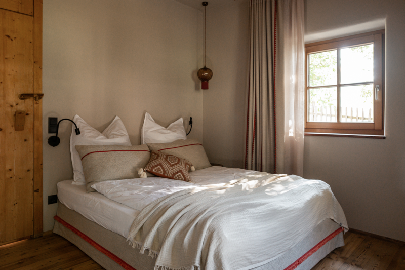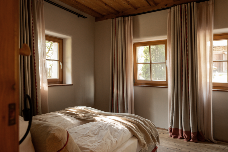 Drei Ferienwohnungen, die in Südtirol ihresgleichen suchen. So einzigartig wie dieses Urlaubsdomizil ist auch der Geschmack von Anna und Simon, zwei Weltenbummlern und Alpinisten, die den Oberortlhof seit 2022 führen und Stück für Stück wieder zu dem Juwel machen, das er einmal war. Mit Einflüssen aus Tibet und Nepal und mit unserer Unterstützung. Wir durften mit hochwertigsten Materialien für das perfekte Finish sorgen. Mit maßgefertigten Vorhängen, Kissen und Sofabetten in wunderschönen, satten und zarten Farben und Mustern, die an ferne Welten erinnern. Ein wunderbares Projekt! Danke für euer Vertrauen, Anna und Simon, sowie für die inspirierende Zusammenarbeit Joanna Lehnis!